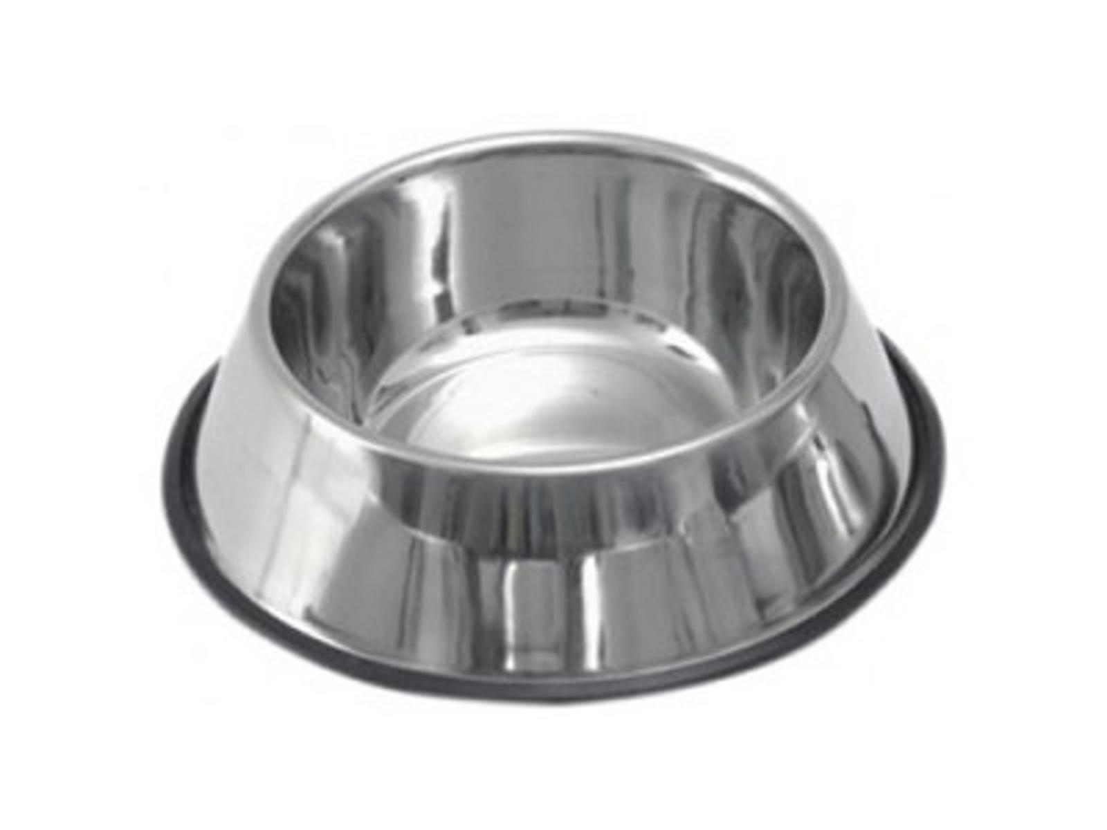 Foderskål i rustfrit stål med anti-slip kant.
