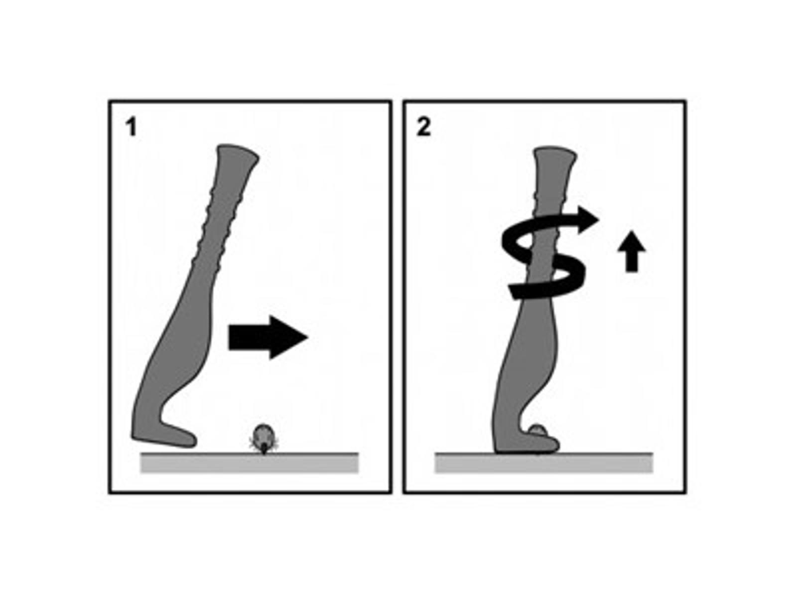 Tægefjerner i grøn plast. Nem, sikker og smertefri fjerning af tæger. special udformet, så tægen fjernes med et vrid. Med nøglering, så man altid kan have den med.