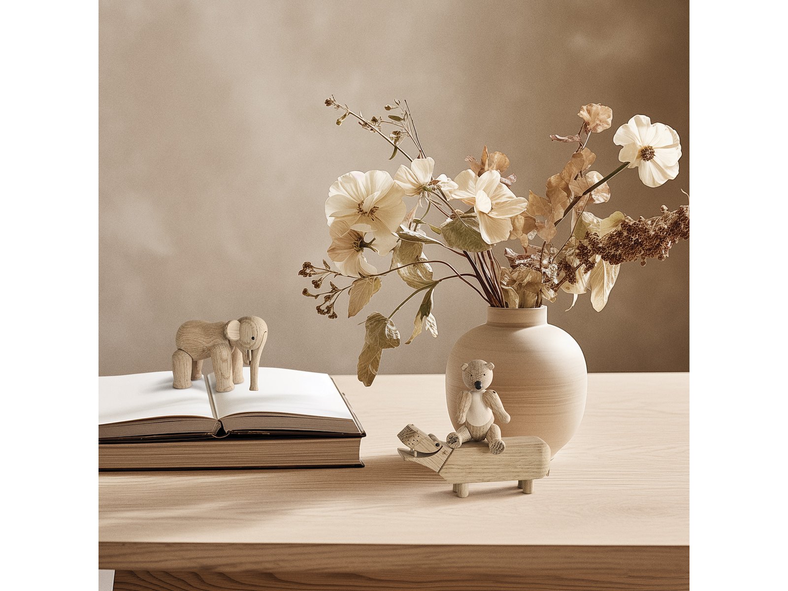 Mød Bjørnen på 9,5 cm, Elefanten på 7,5 cm og Flodhesten på bare 6 cm i højden. Liliput Bjørnen står ligesom sine større søskende klar med sine karakteristiske åbne arme og venlige udtryk. Og selvom den er lille, så kan Liliput Bjørnen stadig både dreje hovedet og bevæge armene, så du kan stille, sætte eller lægge den, nøjagtig som du ønsker. Også Elefanten med sin lange snabel og søde ører har i Liliput-versionen samme indbydende runde form som originalen fra begyndelsen af 50’erne, hvor Kay Bojesens elefantfigur kom til verden på Kunsthåndværkets Forårsudstilling. Flodhesten blev født i 1955 som et muntert indslag til at holde styr på blyanten på skrivebordet, og den vil stadig skabe smil og stil som Liliput på kontoret eller på børneværelset.