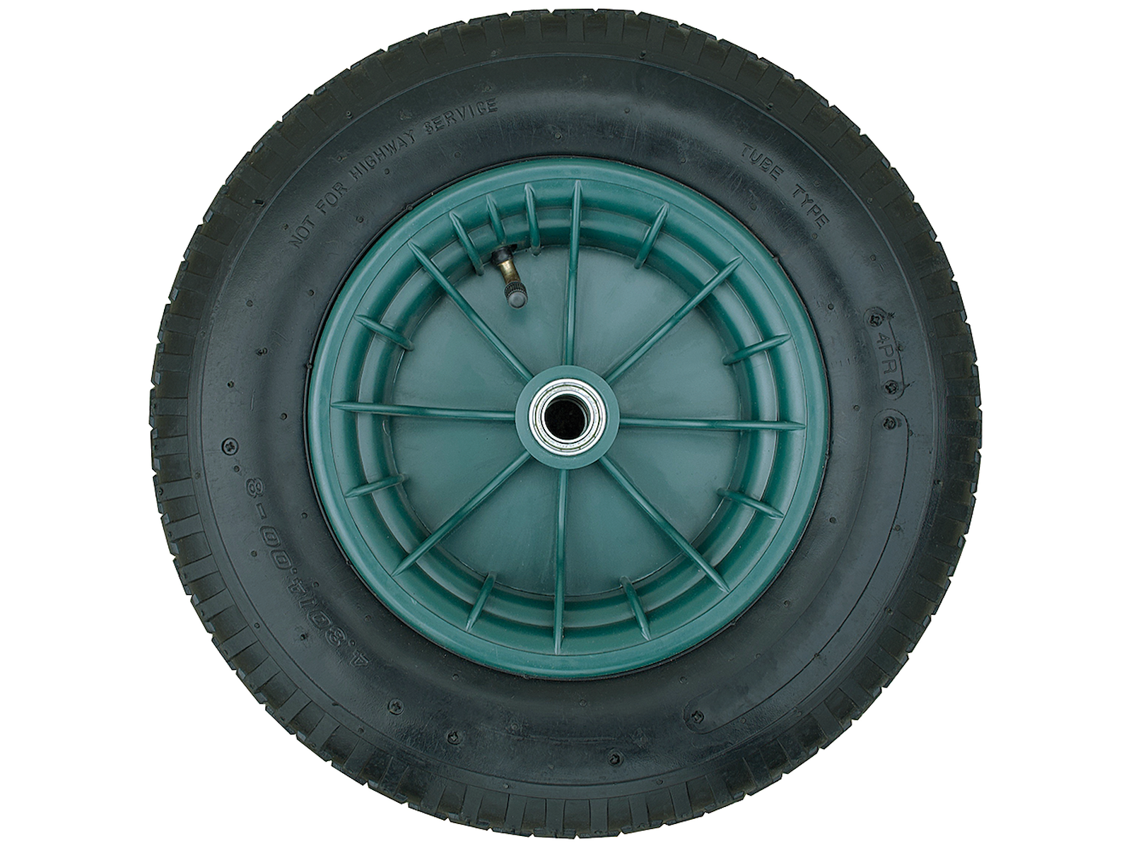 Complete wheel size 4.80/4.00-8 for stable cart4-ply pneumatic rubber wheels with ball bearings.Tire size: 4.80/4.00 - 8.Shaft hole: ø=20 mm x 70 mm. (Axle not included).Impact-resistant plastic rim.