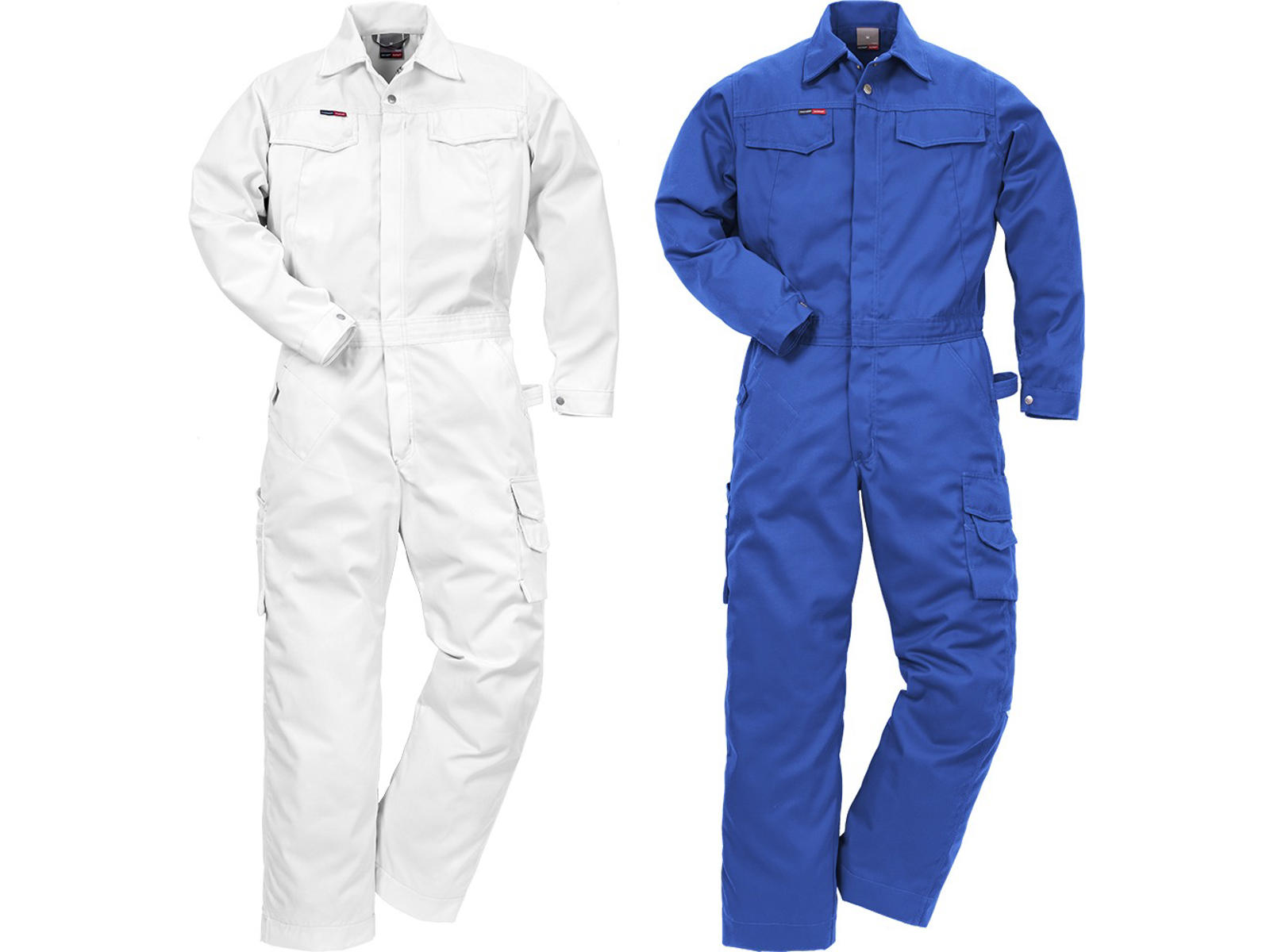 Contrast stitching / Diagonal cut at the front / Reflective details at the back of the knees / Adjustable leg length with 5 cm seam allowance / Adjustable sleeve end / Wide back with yoke / Side opening for underpants / Two-way front zip with flap / Two chest pockets with flap and inner pocket / Two side pockets, the right one with integrated mobile phone pocket / Inside pocket with button closure / Back pockets, one with flap / Large leg pocket with flap - sewn over side seam - with mobile phone pocket with flap and pencil pocket / Double ruler pocket - sewn over side seam - with pencil pocket / Hammer straps / Neck flap for barcode or chip / Recommended for industrial washing according to ISO 15797/OEKO-TEX® certified.