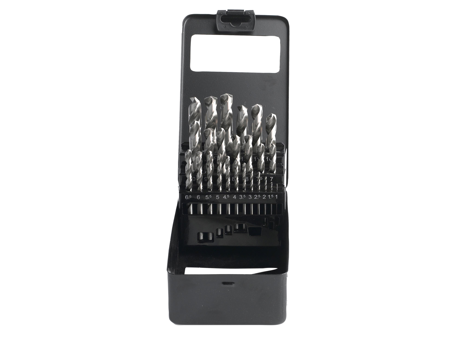 Drill cassette, 25 parts HERO drill set with 25 parts ground metal spiral drills HSS-G from 1.0 - 13 mm, with self-centering tips 135 degrees. Which ensures fast and efficient cutting, and no need for pre-drilling.