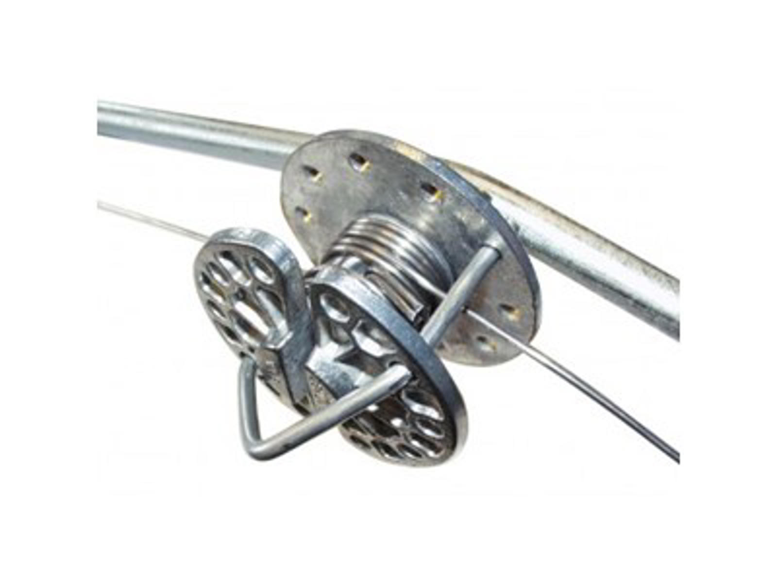 Wire tensioner Round wire tensioner for fence wire. Diameter 80 mm - stainless. Double action tightening. Use 1/2” ratchet wrench or wire tensioner handle. Can be locked with the supplied wire hanger.