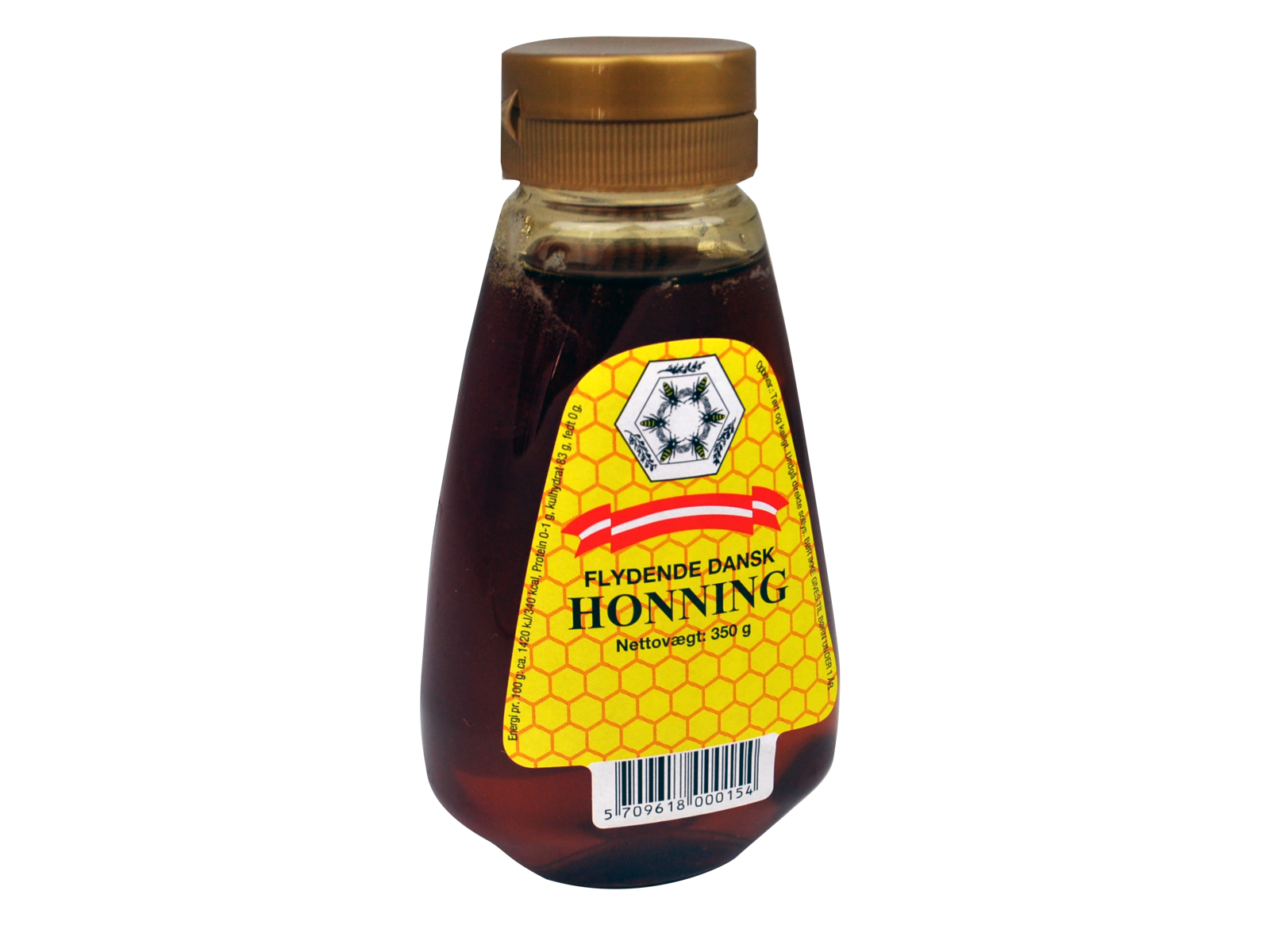 Liquid Danish honey Liquid Danish honey, 350 g. Stays liquid for a period, possibly crystallization can be dissolved by placing the glass in a 50 g warm water bath.