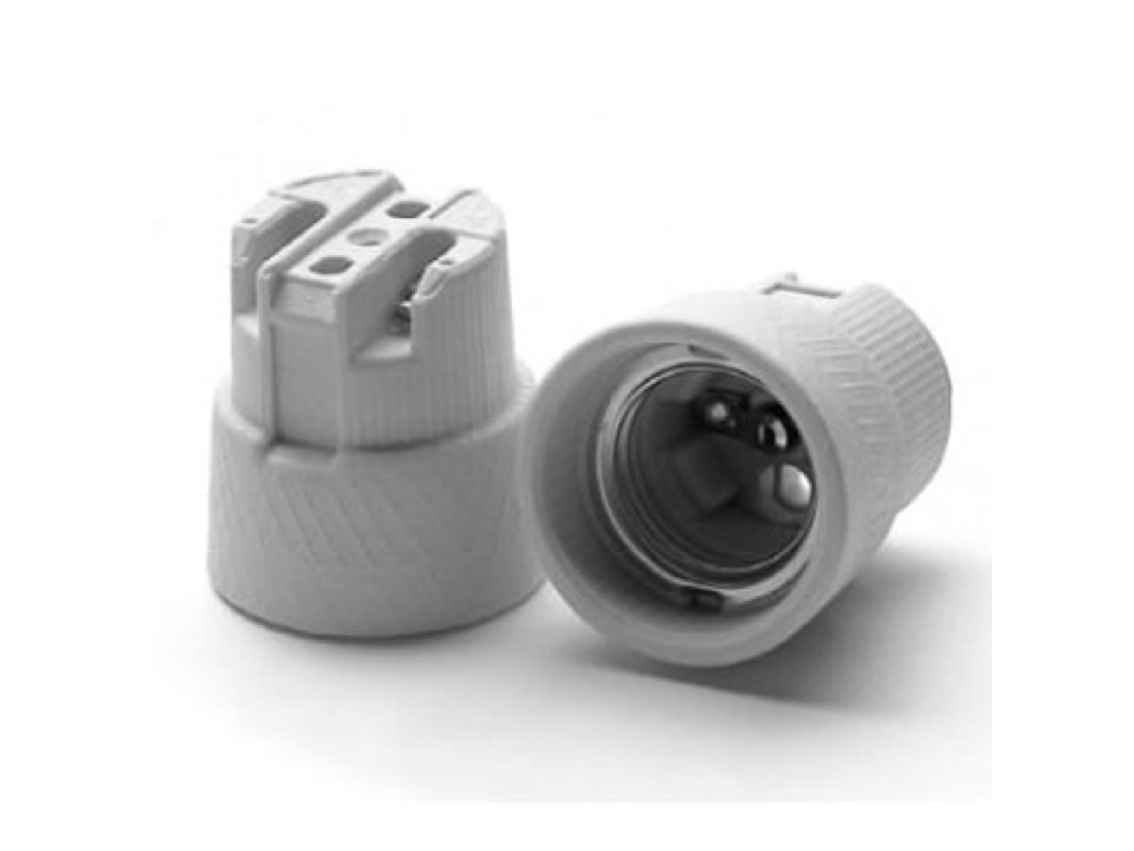 Porcelain socket Socket porcelain base E27. For click bottom or fastening with screw. ø 43x45 mm, 4A, 750V, T250, CE. Porcelain.