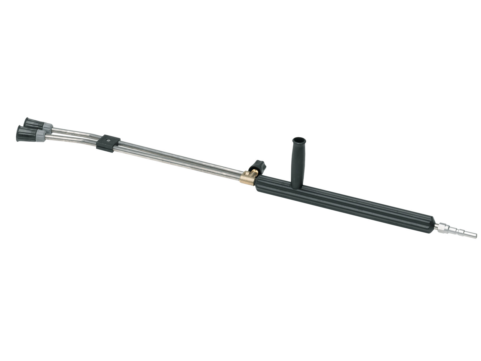 Double lance for high pressure Supplied with low-pressure nozzle and plug nipple. Technical data: Outlet: 2 x ¼” internal thread. Entry: ¼” external thread.