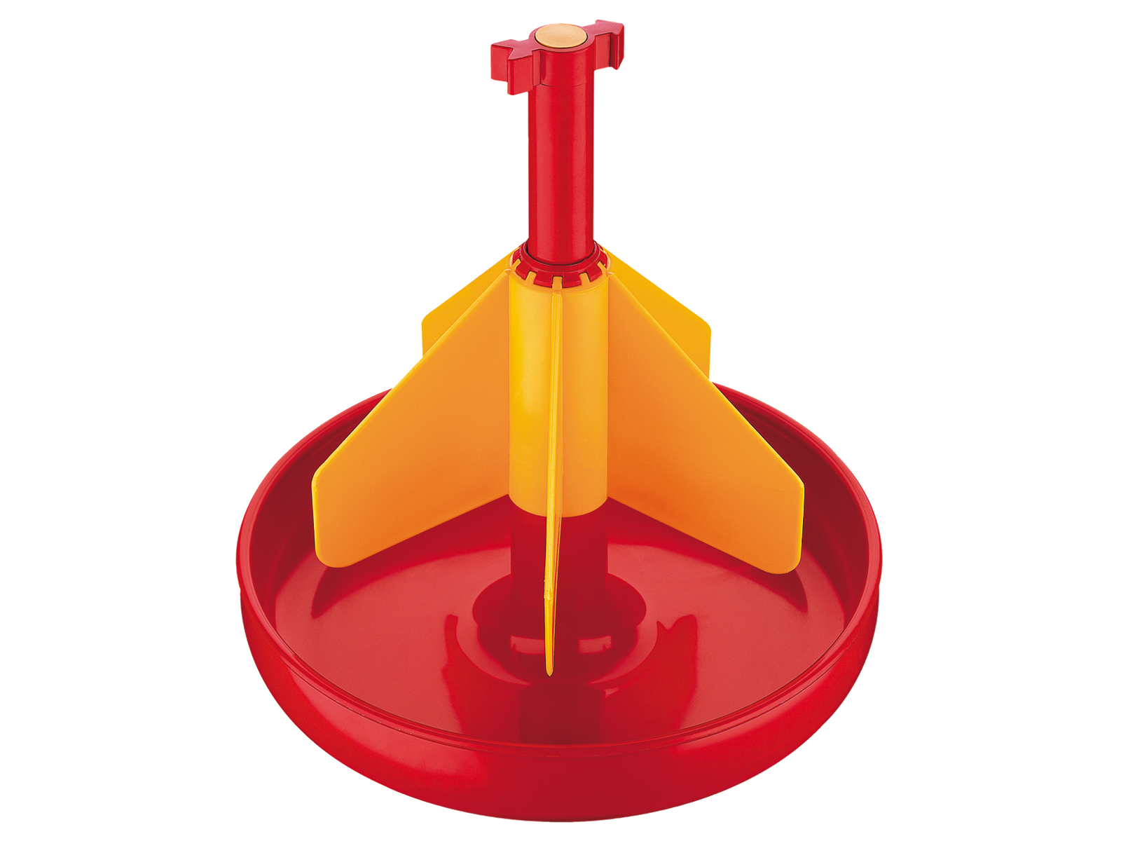 Feeding bowl for piglets Easy Pan is a feeding bowl for starter feed for newly weaned piglets. It is divided into five compartments and mounted on slats with a J-hook. The bowl's capacity is 2.6 liters. Its diameter is 27 cm, the height of the feed bowl is 5.4 cm, and the total height is 32 cm.