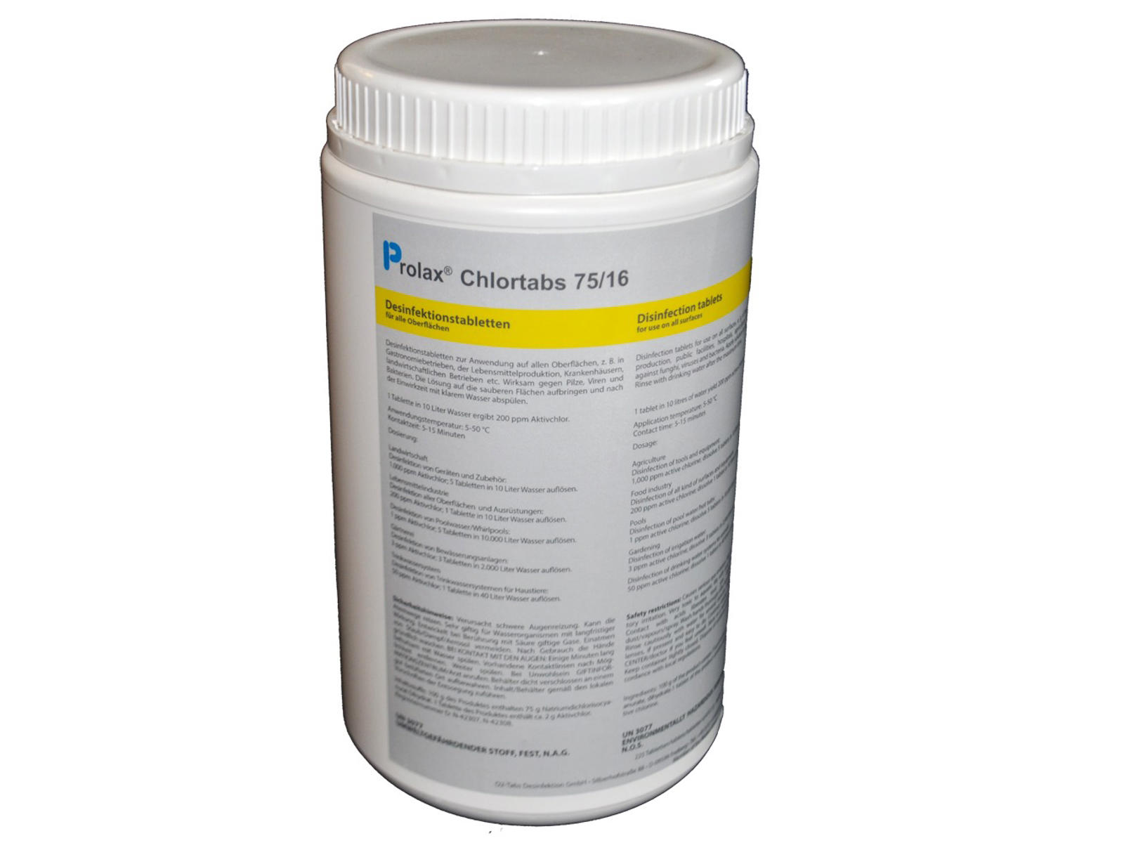 Chlorine tablets, 225 pcs. Disinfection tablets for all surfaces, e.g. disinfection of milking facilities, cloths etc. Effective against fungus, viruses and bacteria. Disinfection of tools and equipment: 1,000 ppm active chlorine; Dissolve 5 tablets in 10 liters of water.