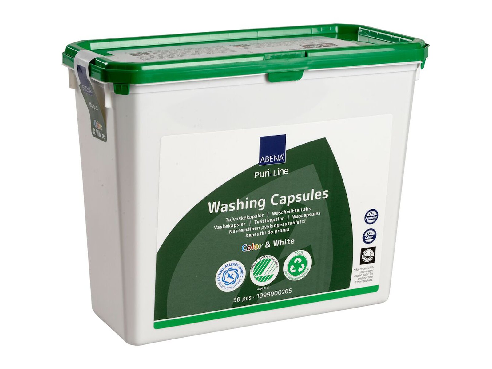 ABENA's user-friendly laundry capsules make laundry easy by giving you the right dosage of detergent with minimal effort - every time. The laundry capsules provide a reliable wash for all your clothes, towels, bedding, etc. Instructions for use: Place one laundry capsule at the bottom of the drum for normal, dirty laundry and soft/medium hard water. For very dirty laundry, hard water or a large load, place two laundry capsules at the bottom of the drum. The laundry capsule must not be placed in the detergent drawer. Turn on the washing machine on the recommended wash program.