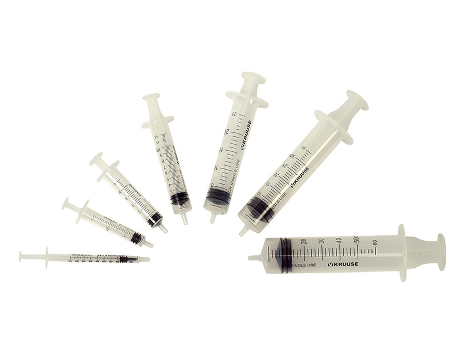 Disposable syringe centric Kruuse 3-comp. 3 component quality syringe, sterile packed with cap. Graduation on the syringe.