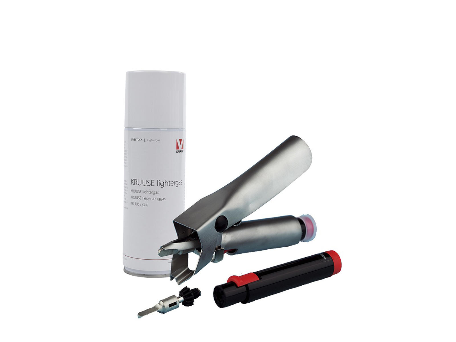 Tail clipper (small model) Cuts and burns the wound in the same operation, which reduces the risk of infection. Tails on piglets are recommended to be clipped after 2-4 days after birth. The working temperature of the knife is approx. 400 degrees. Refill with normal lighter gas. All metal parts are stainless steel. Cuts approx. 120 tails on one filling