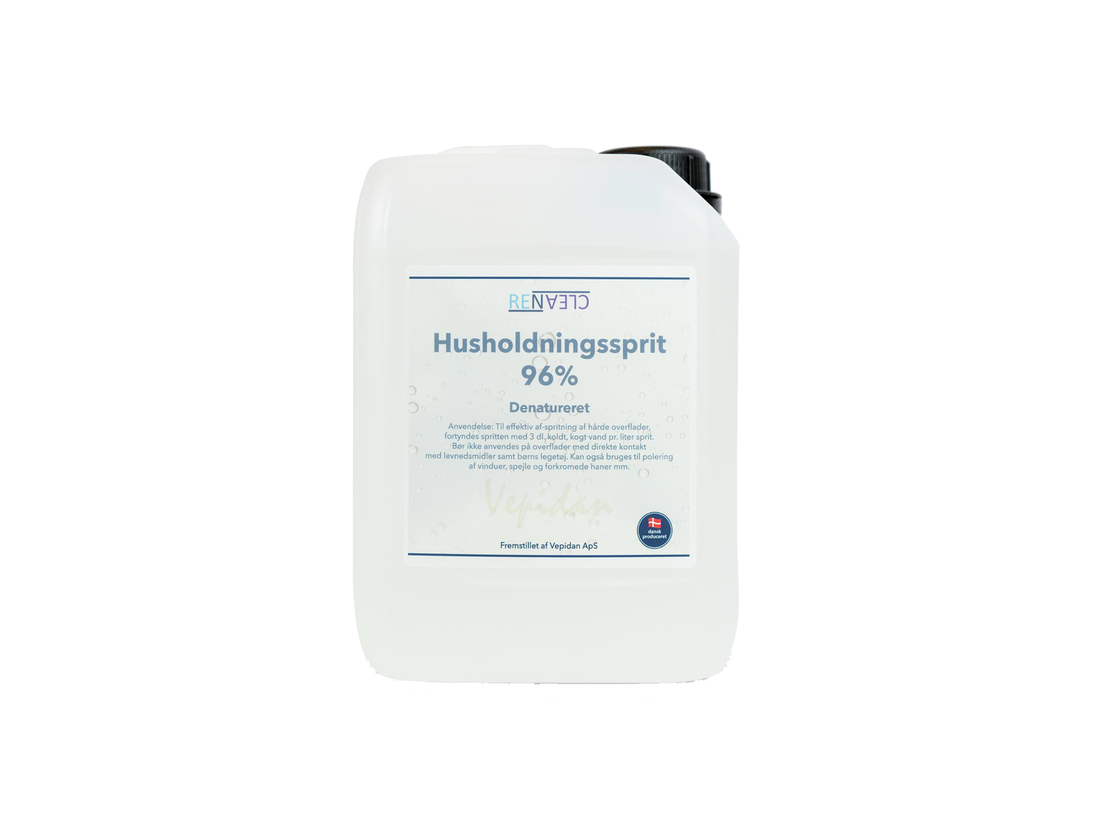 Household alcohol, 96%, 2.5 litres For effective cleaning of hard surfaces, dilute the alcohol with 3 dl of cold boiled water per liters of alcohol. Should not be used on surfaces in direct contact with food. Can also be used for polishing windows, mirrors and chrome-plated taps etc