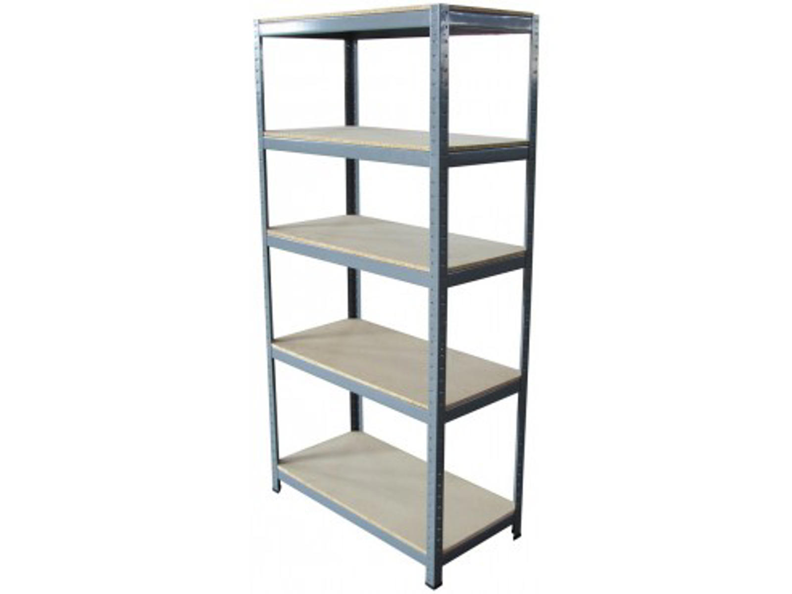 Steel rack 1.4 mm steel with 5 adjustable wooden shelves, 175 kg per shelf. H.180 x W.90 x D.40, weight 36.3 kg.